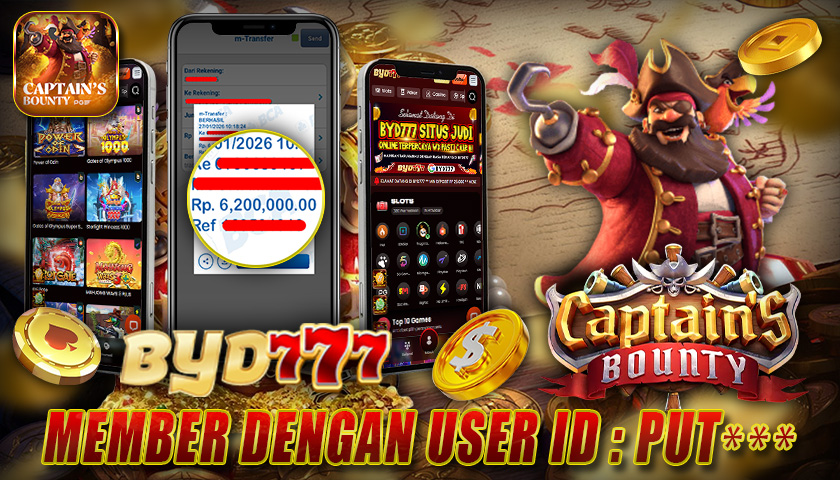 Seorang pemain setia di BYD777 dengan ID : PUT***** baru saja menikmati kemenangan manis setelah berhasil mendapatkan jackpot di game Captain’s Bounty senilai Rp 6.200.000. Tidak butuh waktu lama, dana langsung diproses dan dinyatakan lunas masuk ke akun member tanpa hambatan. Hal ini kembali membuktikan komitmen BYD777 dalam memberikan pelayanan cepat dan aman.