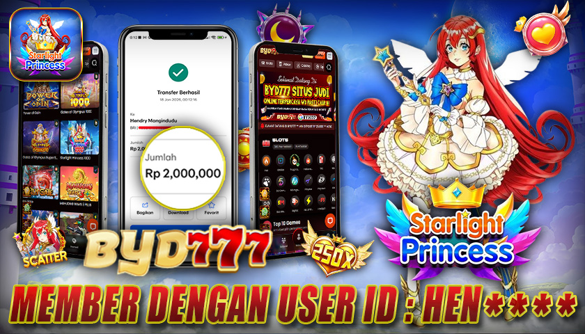Seorang pemain setia di BYD777 dengan ID : HEN***** baru saja menikmati kemenangan manis setelah berhasil mendapatkan jackpot di game Starlight Princess senilai Rp 2.000.000. Tidak butuh waktu lama, dana langsung diproses dan dinyatakan lunas masuk ke akun member tanpa hambatan. Hal ini kembali membuktikan komitmen BYD777 dalam memberikan pelayanan cepat dan aman.