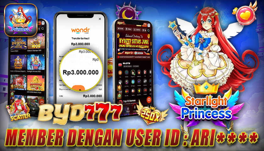 Seorang pemain setia di BYD777 dengan ID : ARI***** baru saja menikmati kemenangan manis setelah berhasil mendapatkan jackpot di game Starlight Princess senilai Rp 3.000.000. Tidak butuh waktu lama, dana langsung diproses dan dinyatakan lunas masuk ke akun member tanpa hambatan. Hal ini kembali membuktikan komitmen BYD777 dalam memberikan pelayanan cepat dan aman.