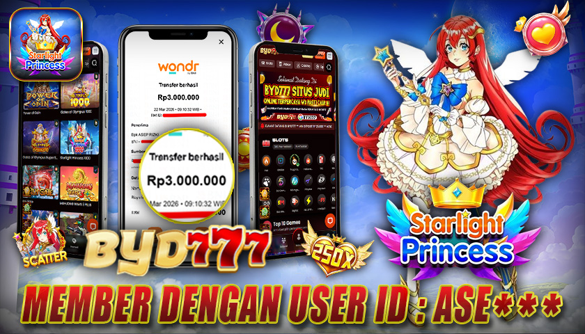 Seorang pemain setia di BYD777 dengan ID : ASE***** baru saja menikmati kemenangan manis setelah berhasil mendapatkan jackpot di game Starlight Princess senilai Rp 3.000.000. Tidak butuh waktu lama, dana langsung diproses dan dinyatakan lunas masuk ke akun member tanpa hambatan. Hal ini kembali membuktikan komitmen BYD777 dalam memberikan pelayanan cepat dan aman.
