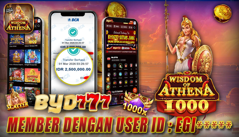 Seorang pemain setia di BYD777 dengan ID : EGI***** baru saja menikmati kemenangan manis setelah berhasil mendapatkan jackpot di game Wisdom of Athena senilai Rp 2.500.000. Tidak butuh waktu lama, dana langsung diproses dan dinyatakan lunas masuk ke akun member tanpa hambatan. Hal ini kembali membuktikan komitmen BYD777 dalam memberikan pelayanan cepat dan aman.