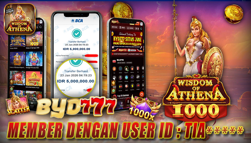 Seorang pemain setia di BYD777 dengan ID : TIA***** baru saja menikmati kemenangan manis setelah berhasil mendapatkan jackpot di game Wisdom of Athena senilai Rp 5.000.000. Tidak butuh waktu lama, dana langsung diproses dan dinyatakan lunas masuk ke akun member tanpa hambatan. Hal ini kembali membuktikan komitmen BYD777 dalam memberikan pelayanan cepat dan aman.