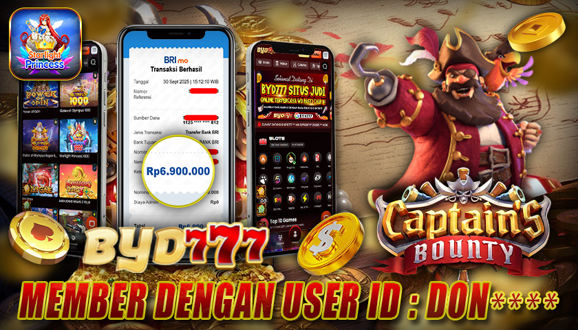 Pemain setia di BYD777 dengan user id : DON***** baru saja menikmati kemenangan manis setelah berhasil mendapatkan jackpot di game Captain’s Bounty senilai Rp 6.900.000. Tidak butuh waktu lama, dana langsung diproses dan dinyatakan lunas masuk ke akun member tanpa hambatan. Hal ini kembali membuktikan komitmen BYD777 dalam memberikan pelayanan cepat dan aman.