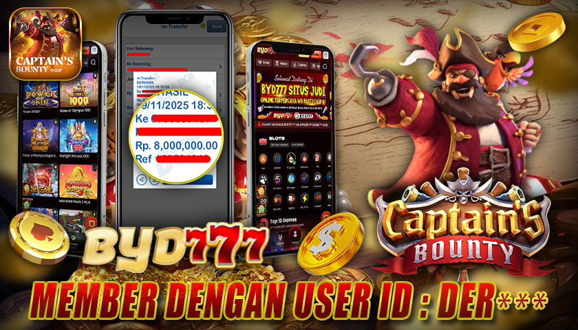 Pemain setia di BYD777 dengan user id : DER***** baru saja menikmati kemenangan manis setelah berhasil mendapatkan jackpot di game Captain’s Bounty senilai RP. 8.000.000. Tidak butuh waktu lama, dana langsung diproses dan dinyatakan lunas masuk ke akun member tanpa hambatan. Hal ini kembali membuktikan komitmen BYD777 dalam memberikan pelayanan cepat dan aman.