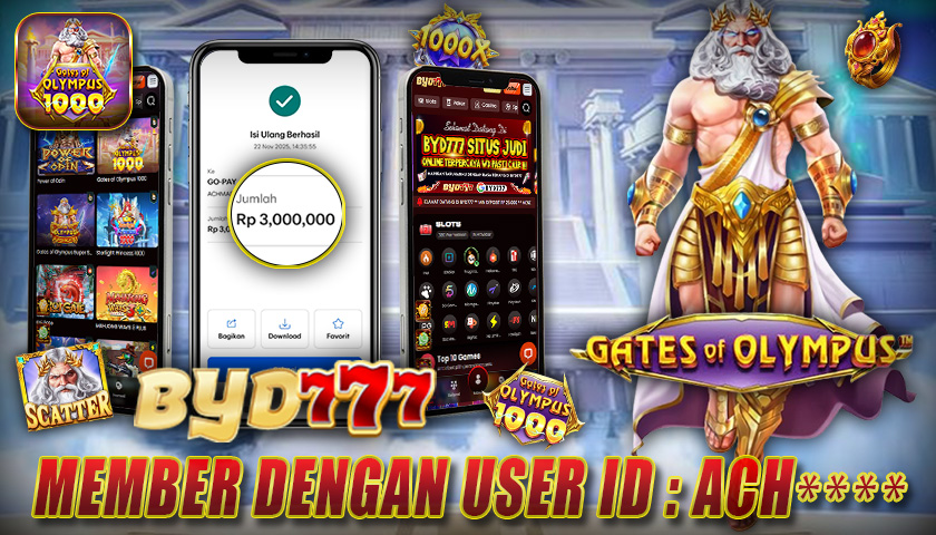 Pemain setia di BYD777 dengan user id : ACH***** baru saja menikmati kemenangan manis setelah berhasil mendapatkan jackpot di game GATES OF OLYMPUS senilai RP. 3.000.000. Tidak butuh waktu lama, dana langsung diproses dan dinyatakan lunas masuk ke akun member tanpa hambatan. Hal ini kembali membuktikan komitmen BYD777 dalam memberikan pelayanan cepat dan aman.