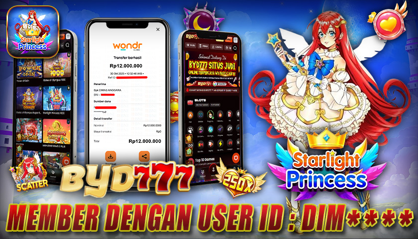 Pemain setia di BYD777 dengan user id : DIM***** baru saja menikmati kemenangan manis setelah berhasil mendapatkan jackpot di game Starlight Princess senilai RP. 12.000.000. Tidak butuh waktu lama, dana langsung diproses dan dinyatakan lunas masuk ke akun member tanpa hambatan. Hal ini kembali membuktikan komitmen BYD777 dalam memberikan pelayanan cepat dan aman.