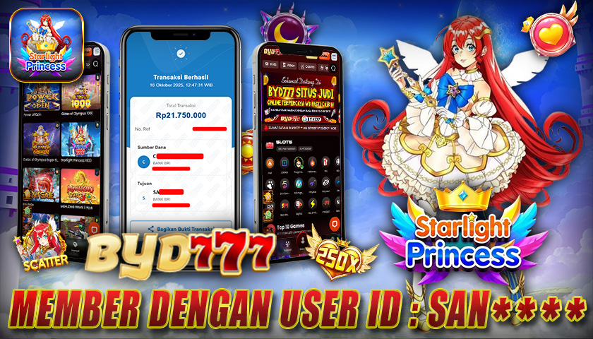 Pemain setia di BYD777 dengan user id : SAN***** baru saja menikmati kemenangan manis setelah berhasil mendapatkan jackpot di game Starlight Princess senilai RP. 21.750.000. Tidak butuh waktu lama, dana langsung diproses dan dinyatakan lunas masuk ke akun member tanpa hambatan. Hal ini kembali membuktikan komitmen BYD777 dalam memberikan pelayanan cepat dan aman.
