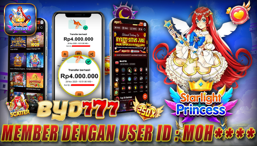Pemain setia di BYD777 dengan user id : MOH***** baru saja menikmati kemenangan manis setelah berhasil mendapatkan jackpot di game Starlight Princess senilai RP. 4.000.000. Tidak butuh waktu lama, dana langsung diproses dan dinyatakan lunas masuk ke akun member tanpa hambatan. Hal ini kembali membuktikan komitmen BYD777 dalam memberikan pelayanan cepat dan aman.