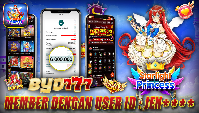 BYD777 JACKPOT SLOT STARLIGHT PRINCESS MENANG RP. 6.000.000,- LUNAS